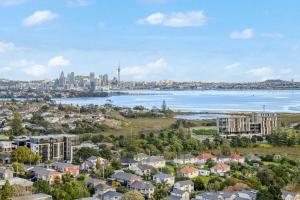 Located in Auckland's North Shore district, the Amazing Ocean Views 1BR w Rooftop Hottub Gym Tennis apartment offers stunning views and exclusive access to a rooftop hot tub. This one-room property includes a balcony and terrace, combining comfortable living with scenic surroundings. It is situated just 5.6 km from Takapuna Beach and close to the Auckland Harbour Bridge.