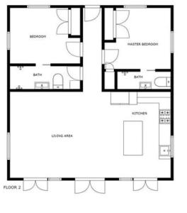 This air-conditioned villa comprises two bedrooms and two bathrooms alongside a living room for comfort and relaxation. A full kitchen provides facilities for cooking and food storage, complemented by amenities such as heating and a washing machine to enhance your stay.