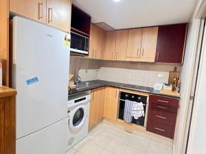 The apartment features one bedroom with one bed and a fully equipped kitchenette for cooking and food storage. Guests will find a washing machine available within the unit along with an indoor pool for seasonal use.