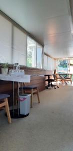 The accommodation comprises one double bed and features a full kitchen equipped with an oven, microwave, refrigerator, toaster, coffee machine, electric kettle, tea and coffee making facilities, kitchenware, and a dining table. Guests can enjoy the private bathroom which includes a walk-in shower without steps or bathtub options along with complimentary toiletries such as shampoo, conditioner, body soap and hairdryer. Additional in-room amenities include an iron with ironing board, washing machine with clothes drying rack, wake-up service or alarm clock options, electric blanket heating system, work desk seating area with sofa as well as wardrobe space.