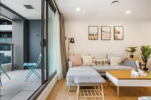 The accommodation includes a bedroom with one bed and soundproof walls for added comfort. Guests can enjoy a fully equipped kitchen featuring an oven, stovetop, refrigerator, dishwasher, microwave, toaster, kitchenware, dining table as well as tea and coffee making facilities. The bathroom comes with a walk-in shower without steps and complimentary toiletries such as shampoo, conditioner and body soap.