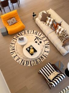 Additional comforts include soundproofed rooms with tile or marble flooring combined with carpeted areas, other amenities comprise a washing machine, heating system wardrobe or closet space as well as seating area with sofa and work desk. Entertainment options include flat-screen TV with bedside sockets while internet access is available throughout via free WiFi coverage. The property provides free private parking on site along with smoke detectors ensuring guest safety.