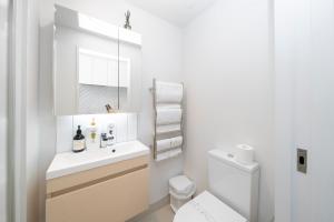 Inside the apartment, guests will find a fully equipped kitchen that includes a stovetop, oven, dishwasher, microwave, refrigerator and toaster as well as tea and coffee making facilities. The unit offers one bed along with amenities such as a washing machine, iron, sofa and work desk. The bathroom features complimentary toiletries including shampoo and body soap.