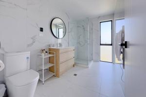 À l’intérieur, les voyageurs bénéficient d’une cuisine entièrement équipée comprenant une plaque chauffante, un réfrigérateur, un lave-vaisselle, un four traditionnel et micro-ondes, un grille-pain ainsi qu’une machine à café , le coin cuisine est complété par toute la vaisselle nécessaire et une bouilloire électrique. La villa comprend trois chambres dotées d’oreillers en plumes et de murs insonorisés ainsi que deux salles de bains munies de douches à l’italienne sans marche. Parmi les équipements supplémentaires figurent la climatisation et le chauffage avec fer et planche à repasser ainsi qu’un étendoir pour vêtements , l’espace salon est aménagé avec des canapés confortables sur sols moquettés.