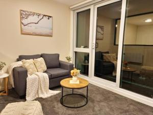 Inside the apartment, guests will find a fully equipped kitchen complete with a stovetop, oven, dishwasher, microwave, refrigerator, coffee machine and toaster alongside tea and coffee making facilities. The living area includes a flat-screen TV with streaming services and seating arrangements on carpeted floors. Additional conveniences include heating, an iron with ironing board, washing machine with tumble dryer function, wardrobe space and non-feather pillows for added comfort.