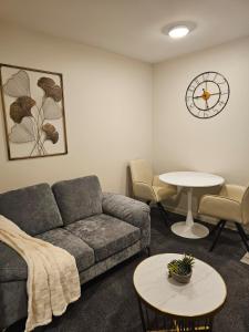 The accommodation comprises one bedroom with one bed and a private bathroom equipped with a walk-in shower and complimentary toiletries. The fully equipped kitchen features modern appliances including an oven, stovetop, dishwasher, refrigerator, toaster, coffee machine as well as tea and coffee making facilities. Guests can enjoy entertainment on a flat-screen TV with streaming services while laundry needs are met by the washing machine provided.