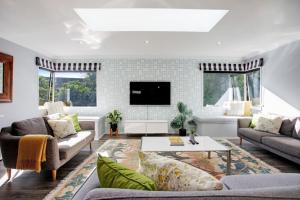 The air-conditioned holiday home offers four bedrooms with five beds in total, three bathrooms equipped with a bathtub and shower, as well as complimentary toiletries such as shampoo and conditioner. Guests will find an equipped kitchen featuring an oven, stovetop, dishwasher, refrigerator, toaster, electric kettle and barbecue grill alongside kitchenware for all cooking needs. The living area includes a sofa seating area with a television and video player.