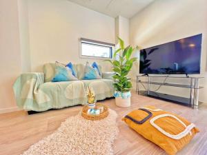Inside the apartment, guests will find one bedroom featuring a comfortable bed with feather pillows and bed linen on carpeted floors. The living area offers a seating space with a flat-screen TV and work desk. The kitchen is fully equipped with modern appliances including an oven, stovetop, microwave, dishwasher, refrigerator as well as electric kettle, toaster, tea and coffee making facilities alongside kitchenware and a dining table.