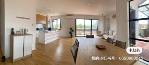 The accommodation consists of one double room featuring a wardrobe, work desk, carpeted floor, clothes drying rack, synthetic non-feather pillows, bed linen and towels. The kitchen area includes a dining table, microwave, electric kettle and refrigerator for guest convenience.
