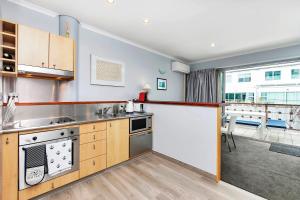 The apartment is conveniently situated close to notable landmarks including Sky Tower at 0.8 km, The Civic at 1 km, and Aotea Centre just 1 km away. Auckland Airport lies 21 km from the property. Guests benefit from lift access to upper floors as well as full-day security.