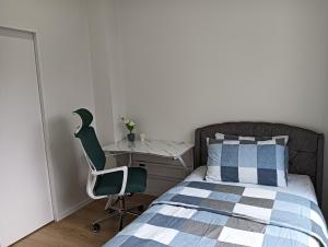 The single room comes equipped with individually controlled air conditioning, a washing machine, and a seating area including a sofa. A well-appointed kitchenette provides kitchenware, a refrigerator, microwave, electric kettle and tea and coffee making facilities alongside a dining table for convenient meal preparation.