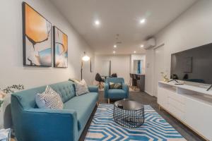 Accommodation includes three bedrooms furnished with four beds, complemented by two bathrooms equipped with showers and complimentary toiletries. The fully equipped kitchen features modern appliances such as a stovetop, oven, dishwasher, refrigerator, microwave, coffee machine, toaster and electric kettle alongside complete kitchenware and a dining table for meals indoors. Additional room amenities comprise individually controlled air conditioning for each room, heating facilities, bed linen and towels provided along with soundproofed rooms offering privacy.