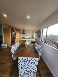 The house was spacious and comfortably furnished, suitable for groups or family gatherings. The location was convenient and quiet, with great views over the Waitākere Ranges visible from the kitchen windows. Showers functioned well, and free WiFi was available throughout the stay. The property included all necessary household items but showed signs of wear and could have benefited from a thorough cleaning.