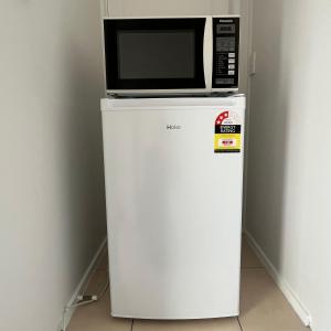 The spacious double room includes one bed, a private entrance, and a seating area complemented by carpeted floors for added comfort. A fully equipped kitchenette comes complete with a refrigerator, microwave, toaster, electric kettle, kitchenware as well as ironing facilities including an iron and ironing board. The private bathroom features both shower options and includes body soap along with a hairdryer.