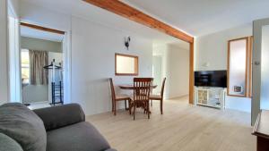 Inside the apartment, guests will find two bedrooms furnished with comfortable beds alongside hardwood parquet flooring throughout the living spaces. The fully equipped kitchenette includes a stovetop, microwave, refrigerator, electric kettle, toaster, kitchenware and dining table to facilitate self-catering needs. Other amenities include a washing machine for convenience and heating to ensure comfort during cooler periods.