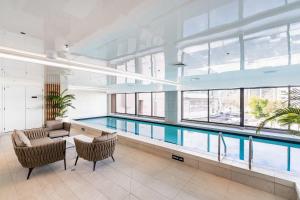 Guests have access to an indoor swimming pool alongside a fitness centre for wellness activities. Additional amenities include free WiFi throughout the property, streaming services via television channels including cable TV options. The apartment features its own private entrance plus patio space to relax outdoors.