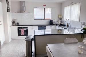 Featuring a garden view and private parking, Modern three bed two and a half bath with in and outdoor flow plus study is located in Auckland, just 2.7 km from Ellerslie Events Centre. This spacious holiday home includes one room with four beds and offers seamless indoor-outdoor living along with a dedicated study area.
