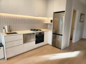 A modern apartment was provided with a well-equipped kitchen and all necessary amenities for a short family stay. The location was excellent, close to Eden Park, eateries, supermarkets, and public transport within walking distance. Off-street parking was available along with a heatpump and a great shower. The accommodation remained quiet despite the inner-city setting. A portacot was offered for infants during the visit.
