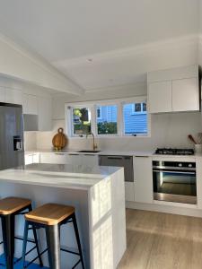 Located in Auckland's North Shore district, the newly renovated 2 bed cottage is a holiday home featuring private parking and free WiFi. This single-room property offers garden views and includes two bedrooms along with a spacious living area.