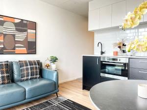 Inside the apartment, guests will find a comfortable bedroom with one bed and complete climate control through heating and air conditioning. The fully equipped kitchen includes an oven, stovetop, refrigerator, dishwasher, microwave, electric kettle as well as tea and coffee making facilities. Additional in-room amenities include ironing facilities with iron and board, towels and bed linen provided for convenience alongside a washing machine.