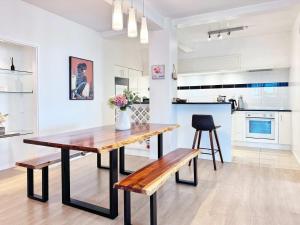 Prime CBD Stay provides a fully equipped kitchen that features an oven, stovetop, refrigerator, dishwasher, microwave, kettle for tea and coffee making as well as kitchenware and a dining table. The unit benefits from a private entrance for added privacy plus lift access in the building.