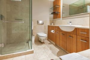 Great location close to bars, stores, restaurants, cafes and supermarkets with a short walk to the waterfront. The apartment was large with separate bedroom, lounge dining area, kitchen and bathroom. It had laundry facilities in suite and access to a pool, sauna and gym in the complex. The view was excellent and security was first class. Check-in instructions were super clear with communication really great.
