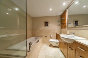 The spacious apartment offers one bedroom with one bed, a living room furnished with a sofa and seating area, as well as an equipped kitchen featuring a stovetop, oven, microwave, refrigerator, dishwasher, toaster, electric kettle, dining table and kitchenware. Guests benefit from air conditioning alongside heating, additional conveniences include a washing machine, tumble dryer for clothes, iron and wardrobe. The private bathroom comes complete with complimentary toiletries hairdryer toilet bathtub or shower.