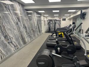 This air-conditioned apartment features a fully equipped kitchenette with tea and coffee making facilities, along with a tumble dryer for clothes. The living area includes a sofa, wardrobe or closet, carpeted floors, ironing facilities including iron and ironing board, heating, washing machine, seating area and a flat-screen TV.