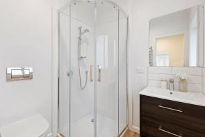 Inside, the air-conditioned accommodation includes two bathrooms equipped with a bathtub and shower alongside complimentary toiletries such as shampoo, conditioner, body soap, and hairdryer. The fully equipped kitchen provides modern conveniences including an oven, stovetop, refrigerator, dishwasher, microwave, toaster, electric kettle as well as kitchenware for dining needs. Additional amenities include heating throughout the home plus bed linen and towels for guests’ comfort.