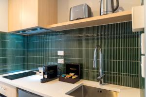 The accommodation consists of studios and twin/double rooms featuring parquet or tiled floors with air conditioning. Each unit has a private bathroom with shower facilities, hairdryer, shampoo, conditioner, body soap, toilet with grab rails in some accessible units. Guests enjoy flat-screen TVs with streaming services as well as seating areas that include sofas or work desks. Kitchenettes are fully equipped with refrigerators, microwaves, stovetops or full kitchens depending on the room type, additional conveniences include coffee machines or tea/coffee-making facilities along with toasters and dining tables.