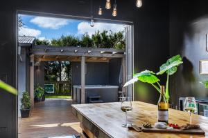The Black Barn is a spacious holiday home in Auckland featuring air-conditioned accommodation and a private patio. This one-room property includes free WiFi, free private parking, and access to a terrace. Located 24 km from Eden Park Stadium, it offers guests a peaceful retreat with modern comforts.