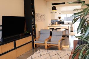 Inside the apartment, guests will find three beds along with air conditioning to ensure comfort. The fully equipped kitchen includes a stovetop, refrigerator, dishwasher, oven and microwave as well as kitchenware for all cooking needs. Additional in-room amenities include ironing facilities with iron and ironing board, a washing machine with tumble dryer function, seating area with sofa bed and work desk.