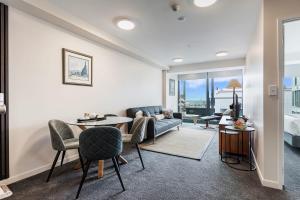 The apartment enjoys proximity to notable landmarks such as Sky Tower, Aotea Centre, and Aotea Square. Auckland Airport lies 20 km away, providing easy access for travelers.